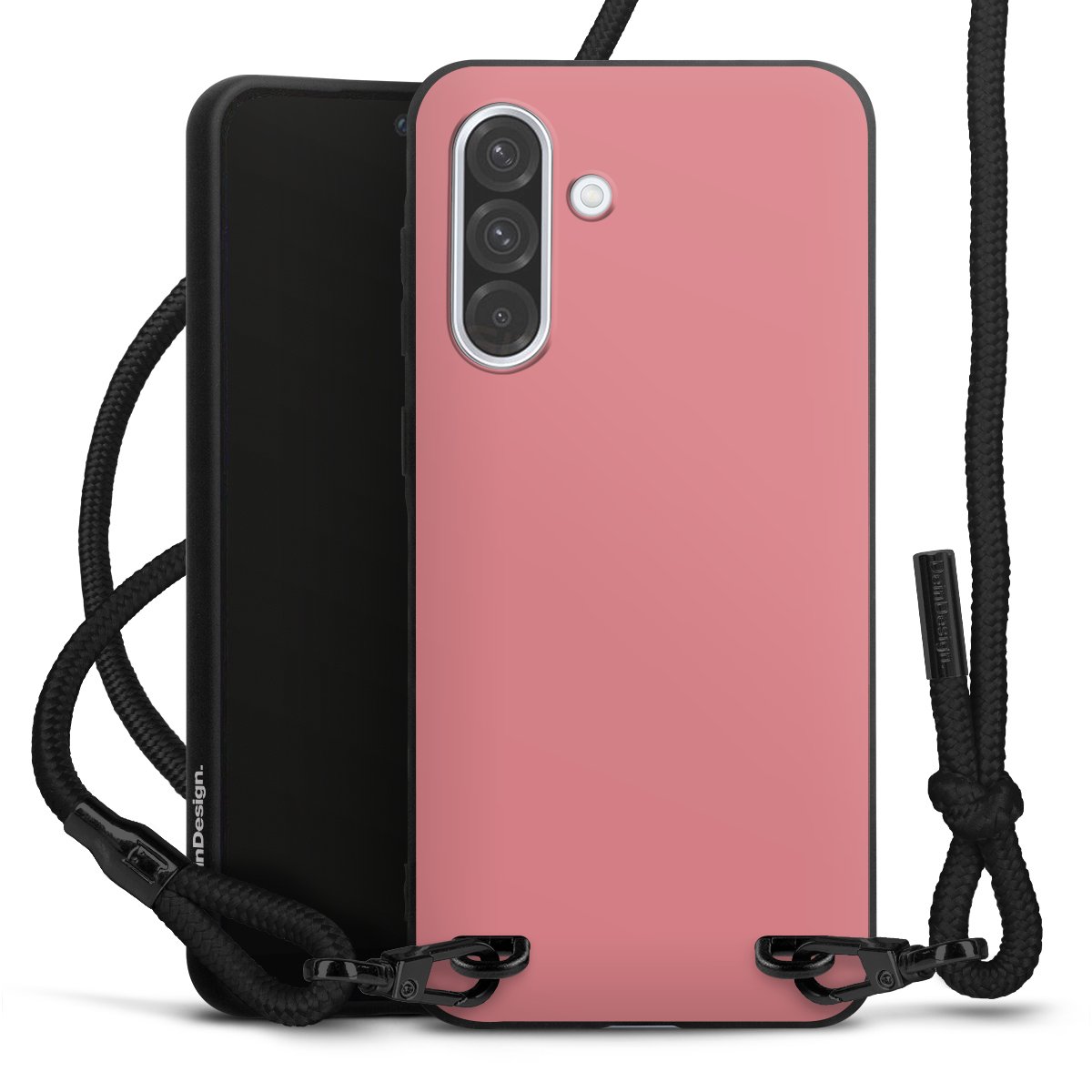 Pure Black: Handyhülle, Stoffband und Metalldetails in stylischem Mattschwarz.