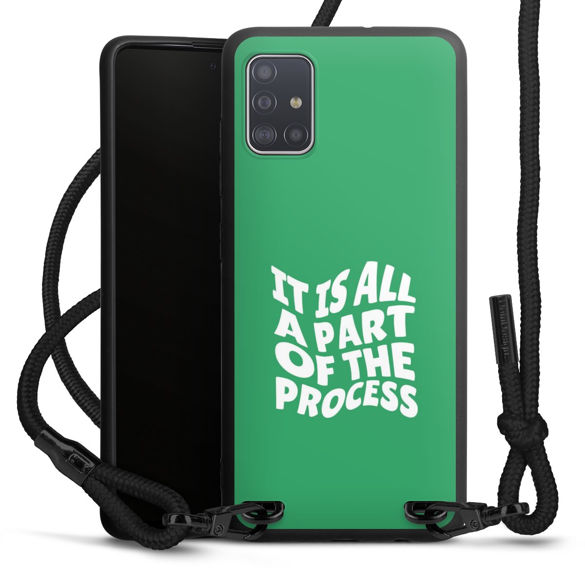 Die mattschwarze Silikonhülle besteht aus flexiblen TPU (thermoplastisches Polyurethan) und bietet robusten Schutz. Durch das langlebige, bruchsichere Material ist die Hülle biegsam und formbeständig zugleich. Die matte Oberfläche lässt Dein Design besser zur Geltung kommen und ist weniger anfällig für Fingerabdrücke und Schmutz. Das stylische Trend-Accessoire liegt griffig in der Hand und wird optimal von der Handykette aus Stoff (Polyester) ergänzt. Das geflochtene Stoffband ist ca. 1,70 Meter lang mit einem Durchmesser von ca. 0,5cm. Aufgrund der besonderen Knotentechnik ist das Band durch einfaches Ziehen in der Länge verstellbar. Als kleines i-Tüpfelchen haben wir das Band mit schicken Metall-Verschlüssen in Mattschwarz versehen.