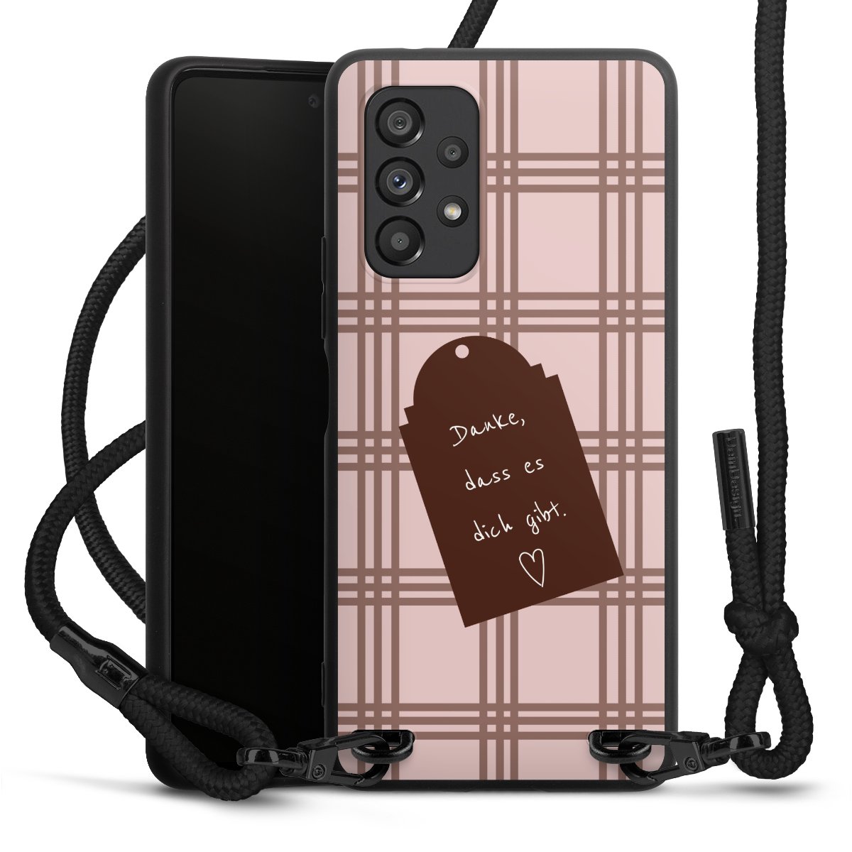 Die mattschwarze Silikonhülle besteht aus flexiblen TPU (thermoplastisches Polyurethan) und bietet robusten Schutz. Durch das langlebige, bruchsichere Material ist die Hülle biegsam und formbeständig zugleich. Die matte Oberfläche lässt Dein Design besser zur Geltung kommen und ist weniger anfällig für Fingerabdrücke und Schmutz. Das stylische Trend-Accessoire liegt griffig in der Hand und wird optimal von der Handykette aus Stoff (Polyester) ergänzt. Das geflochtene Stoffband ist ca. 1,70 Meter lang mit einem Durchmesser von ca. 0,5cm. Aufgrund der besonderen Knotentechnik ist das Band durch einfaches Ziehen in der Länge verstellbar. Als kleines i-Tüpfelchen haben wir das Band mit schicken Metall-Verschlüssen in Mattschwarz versehen.