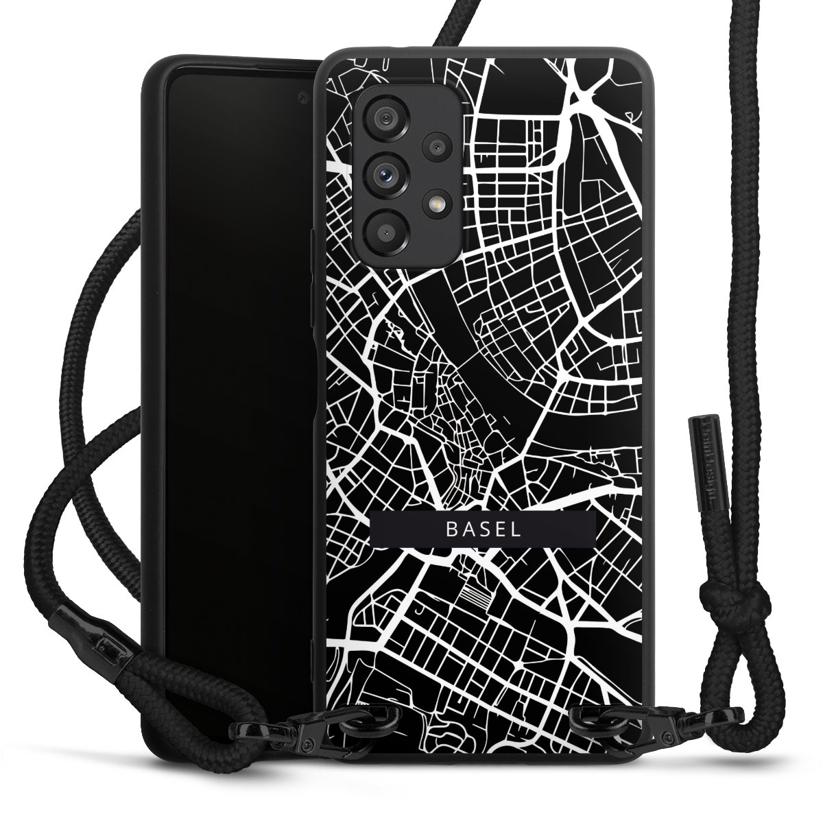 Die mattschwarze Silikonhülle besteht aus flexiblen TPU (thermoplastisches Polyurethan) und bietet robusten Schutz. Durch das langlebige, bruchsichere Material ist die Hülle biegsam und formbeständig zugleich. Die matte Oberfläche lässt Dein Design besser zur Geltung kommen und ist weniger anfällig für Fingerabdrücke und Schmutz. Das stylische Trend-Accessoire liegt griffig in der Hand und wird optimal von der Handykette aus Stoff (Polyester) ergänzt. Das geflochtene Stoffband ist ca. 1,70 Meter lang mit einem Durchmesser von ca. 0,5cm. Aufgrund der besonderen Knotentechnik ist das Band durch einfaches Ziehen in der Länge verstellbar. Als kleines i-Tüpfelchen haben wir das Band mit schicken Metall-Verschlüssen in Mattschwarz versehen.