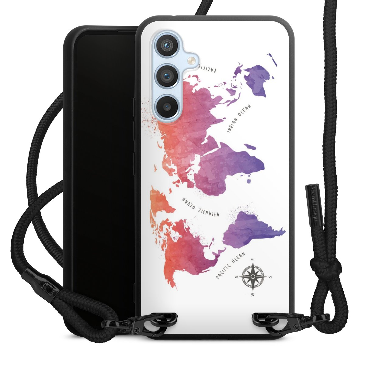 Bei dieser Handyhülle nutzen wir das solide Direktdruck-Verfahren, weshalb der Druckbereich ausschließlich die Rückseite umfasst und der Rand hingegen unbedruckt bleibt. Das Case zum Umhängen kann sowohl unbedruckt, als auch vollflächig oder partiell bedruckt bestellt werden. Wähle für Dein Design entweder eines unserer exklusiven Shop-Motive, oder werde kreativ und gestalte Dein Wunschdesign zum Beispiel mit Fotos und Overlays selbst. Designe Dir Dein persönliches Trend-Accessoire und setze ein individuelles Statement auf den Straßen.