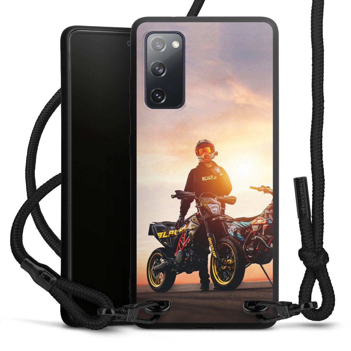 Die mattschwarze Silikonhülle besteht aus flexiblen TPU (thermoplastisches Polyurethan) und bietet robusten Schutz. Durch das langlebige, bruchsichere Material ist die Hülle biegsam und formbeständig zugleich. Die matte Oberfläche lässt Dein Design besser zur Geltung kommen und ist weniger anfällig für Fingerabdrücke und Schmutz. Das stylische Trend-Accessoire liegt griffig in der Hand und wird optimal von der Handykette aus Stoff (Polyester) ergänzt. Das geflochtene Stoffband ist ca. 1,70 Meter lang mit einem Durchmesser von ca. 0,5cm. Aufgrund der besonderen Knotentechnik ist das Band durch einfaches Ziehen in der Länge verstellbar. Als kleines i-Tüpfelchen haben wir das Band mit schicken Metall-Verschlüssen in Mattschwarz versehen.