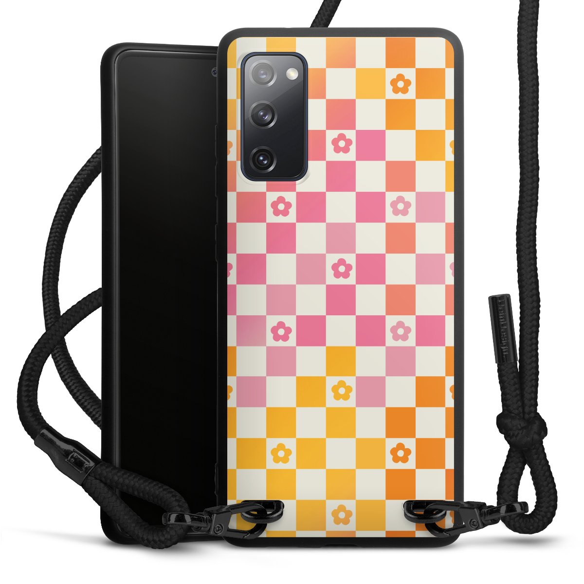 Die mattschwarze Silikonhülle besteht aus flexiblen TPU (thermoplastisches Polyurethan) und bietet robusten Schutz. Durch das langlebige, bruchsichere Material ist die Hülle biegsam und formbeständig zugleich. Die matte Oberfläche lässt Dein Design besser zur Geltung kommen und ist weniger anfällig für Fingerabdrücke und Schmutz. Das stylische Trend-Accessoire liegt griffig in der Hand und wird optimal von der Handykette aus Stoff (Polyester) ergänzt. Das geflochtene Stoffband ist ca. 1,70 Meter lang mit einem Durchmesser von ca. 0,5cm. Aufgrund der besonderen Knotentechnik ist das Band durch einfaches Ziehen in der Länge verstellbar. Als kleines i-Tüpfelchen haben wir das Band mit schicken Metall-Verschlüssen in Mattschwarz versehen.