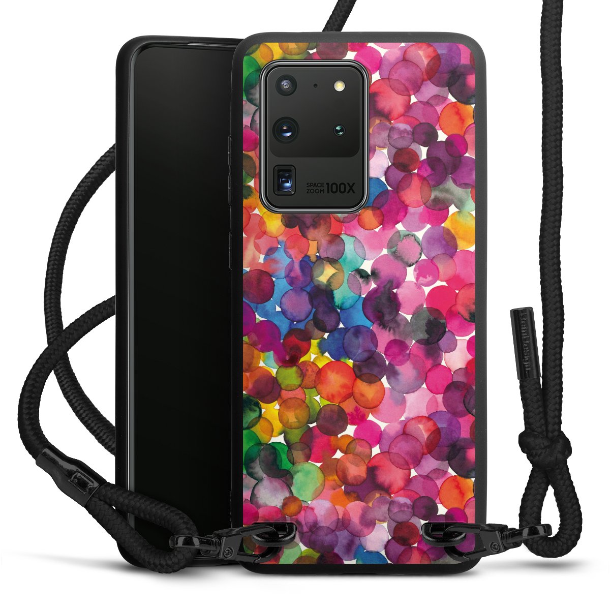 Bei dieser Handyhülle nutzen wir das solide Direktdruck-Verfahren, weshalb der Druckbereich ausschließlich die Rückseite umfasst und der Rand hingegen unbedruckt bleibt. Das Case zum Umhängen kann sowohl unbedruckt, als auch vollflächig oder partiell bedruckt bestellt werden. Wähle für Dein Design entweder eines unserer exklusiven Shop-Motive, oder werde kreativ und gestalte Dein Wunschdesign zum Beispiel mit Fotos und Overlays selbst. Designe Dir Dein persönliches Trend-Accessoire und setze ein individuelles Statement auf den Straßen.