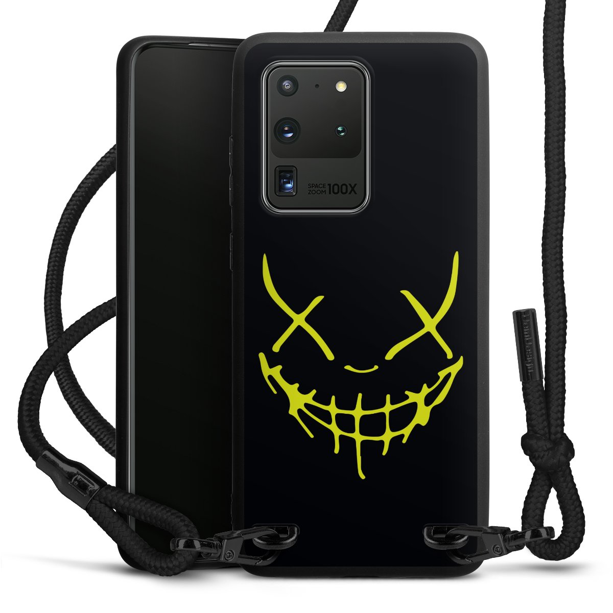 Die mattschwarze Silikonhülle besteht aus flexiblen TPU (thermoplastisches Polyurethan) und bietet robusten Schutz. Durch das langlebige, bruchsichere Material ist die Hülle biegsam und formbeständig zugleich. Die matte Oberfläche lässt Dein Design besser zur Geltung kommen und ist weniger anfällig für Fingerabdrücke und Schmutz. Das stylische Trend-Accessoire liegt griffig in der Hand und wird optimal von der Handykette aus Stoff (Polyester) ergänzt. Das geflochtene Stoffband ist ca. 1,70 Meter lang mit einem Durchmesser von ca. 0,5cm. Aufgrund der besonderen Knotentechnik ist das Band durch einfaches Ziehen in der Länge verstellbar. Als kleines i-Tüpfelchen haben wir das Band mit schicken Metall-Verschlüssen in Mattschwarz versehen.