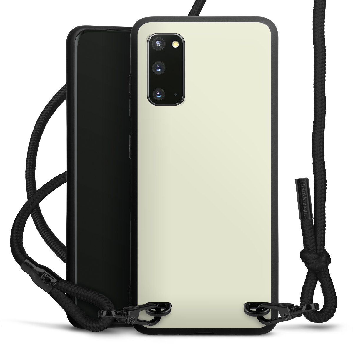 Die mattschwarze Silikonhülle besteht aus flexiblen TPU (thermoplastisches Polyurethan) und bietet robusten Schutz. Durch das langlebige, bruchsichere Material ist die Hülle biegsam und formbeständig zugleich. Die matte Oberfläche lässt Dein Design besser zur Geltung kommen und ist weniger anfällig für Fingerabdrücke und Schmutz. Das stylische Trend-Accessoire liegt griffig in der Hand und wird optimal von der Handykette aus Stoff (Polyester) ergänzt. Das geflochtene Stoffband ist ca. 1,70 Meter lang mit einem Durchmesser von ca. 0,5cm. Aufgrund der besonderen Knotentechnik ist das Band durch einfaches Ziehen in der Länge verstellbar. Als kleines i-Tüpfelchen haben wir das Band mit schicken Metall-Verschlüssen in Mattschwarz versehen.