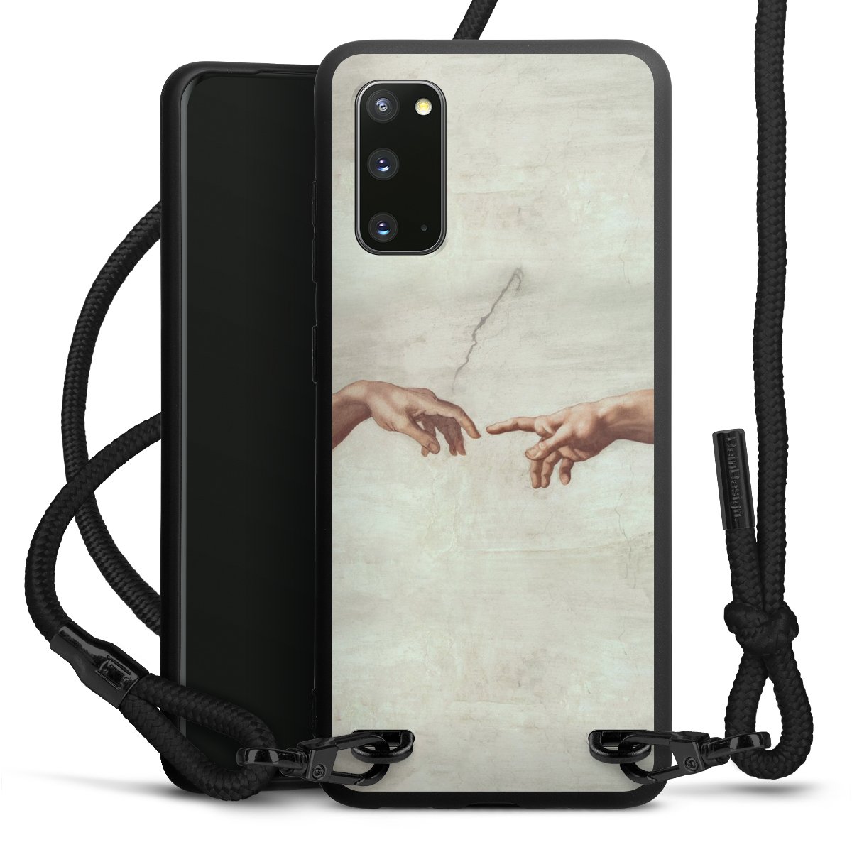 Die mattschwarze Silikonhülle besteht aus flexiblen TPU (thermoplastisches Polyurethan) und bietet robusten Schutz. Durch das langlebige, bruchsichere Material ist die Hülle biegsam und formbeständig zugleich. Die matte Oberfläche lässt Dein Design besser zur Geltung kommen und ist weniger anfällig für Fingerabdrücke und Schmutz. Das stylische Trend-Accessoire liegt griffig in der Hand und wird optimal von der Handykette aus Stoff (Polyester) ergänzt. Das geflochtene Stoffband ist ca. 1,70 Meter lang mit einem Durchmesser von ca. 0,5cm. Aufgrund der besonderen Knotentechnik ist das Band durch einfaches Ziehen in der Länge verstellbar. Als kleines i-Tüpfelchen haben wir das Band mit schicken Metall-Verschlüssen in Mattschwarz versehen.