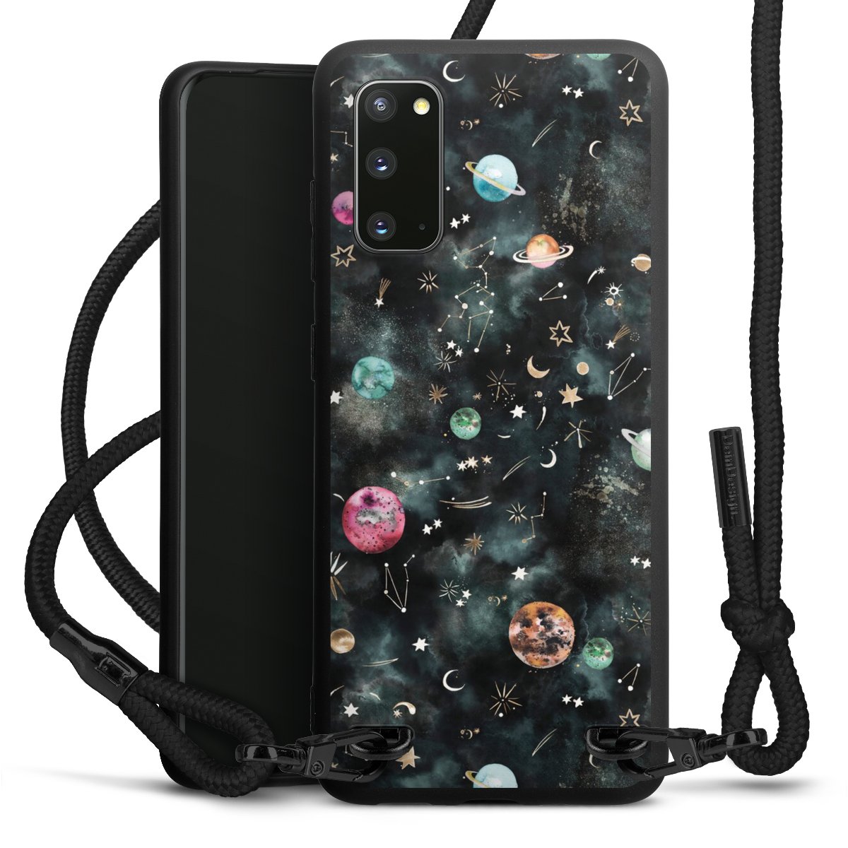 Die mattschwarze Silikonhülle besteht aus flexiblen TPU (thermoplastisches Polyurethan) und bietet robusten Schutz. Durch das langlebige, bruchsichere Material ist die Hülle biegsam und formbeständig zugleich. Die matte Oberfläche lässt Dein Design besser zur Geltung kommen und ist weniger anfällig für Fingerabdrücke und Schmutz. Das stylische Trend-Accessoire liegt griffig in der Hand und wird optimal von der Handykette aus Stoff (Polyester) ergänzt. Das geflochtene Stoffband ist ca. 1,70 Meter lang mit einem Durchmesser von ca. 0,5cm. Aufgrund der besonderen Knotentechnik ist das Band durch einfaches Ziehen in der Länge verstellbar. Als kleines i-Tüpfelchen haben wir das Band mit schicken Metall-Verschlüssen in Mattschwarz versehen.