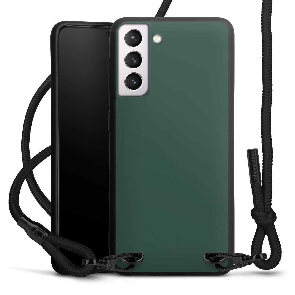 Die mattschwarze Silikonhülle besteht aus flexiblen TPU (thermoplastisches Polyurethan) und bietet robusten Schutz. Durch das langlebige, bruchsichere Material ist die Hülle biegsam und formbeständig zugleich. Die matte Oberfläche lässt Dein Design besser zur Geltung kommen und ist weniger anfällig für Fingerabdrücke und Schmutz. Das stylische Trend-Accessoire liegt griffig in der Hand und wird optimal von der Handykette aus Stoff (Polyester) ergänzt. Das geflochtene Stoffband ist ca. 1,70 Meter lang mit einem Durchmesser von ca. 0,5cm. Aufgrund der besonderen Knotentechnik ist das Band durch einfaches Ziehen in der Länge verstellbar. Als kleines i-Tüpfelchen haben wir das Band mit schicken Metall-Verschlüssen in Mattschwarz versehen.