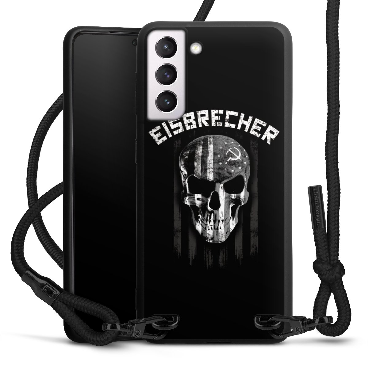 Die mattschwarze Silikonhülle besteht aus flexiblen TPU (thermoplastisches Polyurethan) und bietet robusten Schutz. Durch das langlebige, bruchsichere Material ist die Hülle biegsam und formbeständig zugleich. Die matte Oberfläche lässt Dein Design besser zur Geltung kommen und ist weniger anfällig für Fingerabdrücke und Schmutz. Das stylische Trend-Accessoire liegt griffig in der Hand und wird optimal von der Handykette aus Stoff (Polyester) ergänzt. Das geflochtene Stoffband ist ca. 1,70 Meter lang mit einem Durchmesser von ca. 0,5cm. Aufgrund der besonderen Knotentechnik ist das Band durch einfaches Ziehen in der Länge verstellbar. Als kleines i-Tüpfelchen haben wir das Band mit schicken Metall-Verschlüssen in Mattschwarz versehen.