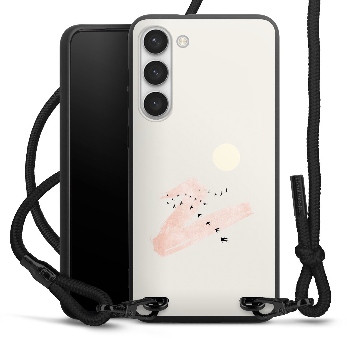 Bei dieser Handyhülle nutzen wir das solide Direktdruck-Verfahren, weshalb der Druckbereich ausschließlich die Rückseite umfasst und der Rand hingegen unbedruckt bleibt. Das Case zum Umhängen kann sowohl unbedruckt, als auch vollflächig oder partiell bedruckt bestellt werden. Wähle für Dein Design entweder eines unserer exklusiven Shop-Motive, oder werde kreativ und gestalte Dein Wunschdesign zum Beispiel mit Fotos und Overlays selbst. Designe Dir Dein persönliches Trend-Accessoire und setze ein individuelles Statement auf den Straßen.