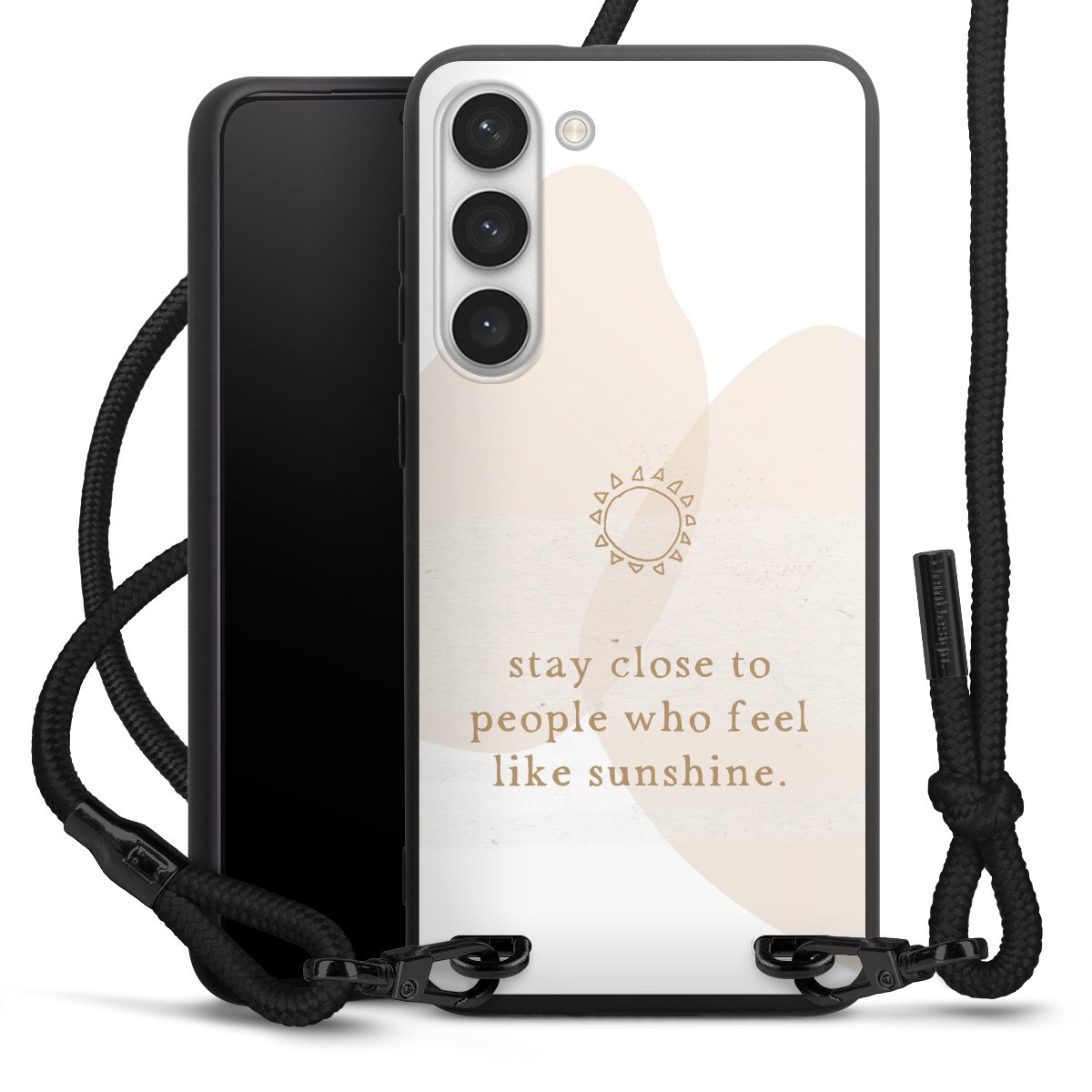 Bei dieser Handyhülle nutzen wir das solide Direktdruck-Verfahren, weshalb der Druckbereich ausschließlich die Rückseite umfasst und der Rand hingegen unbedruckt bleibt. Das Case zum Umhängen kann sowohl unbedruckt, als auch vollflächig oder partiell bedruckt bestellt werden. Wähle für Dein Design entweder eines unserer exklusiven Shop-Motive, oder werde kreativ und gestalte Dein Wunschdesign zum Beispiel mit Fotos und Overlays selbst. Designe Dir Dein persönliches Trend-Accessoire und setze ein individuelles Statement auf den Straßen.