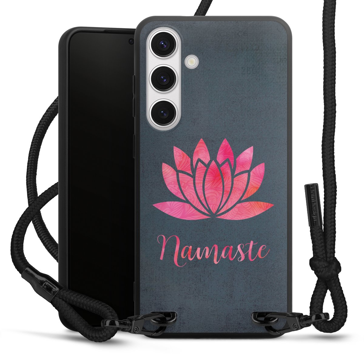 Die mattschwarze Silikonhülle besteht aus flexiblen TPU (thermoplastisches Polyurethan) und bietet robusten Schutz. Durch das langlebige, bruchsichere Material ist die Hülle biegsam und formbeständig zugleich. Die matte Oberfläche lässt Dein Design besser zur Geltung kommen und ist weniger anfällig für Fingerabdrücke und Schmutz. Das stylische Trend-Accessoire liegt griffig in der Hand und wird optimal von der Handykette aus Stoff (Polyester) ergänzt. Das geflochtene Stoffband ist ca. 1,70 Meter lang mit einem Durchmesser von ca. 0,5cm. Aufgrund der besonderen Knotentechnik ist das Band durch einfaches Ziehen in der Länge verstellbar. Als kleines i-Tüpfelchen haben wir das Band mit schicken Metall-Verschlüssen in Mattschwarz versehen.