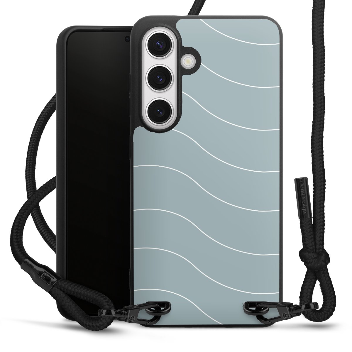 Die mattschwarze Silikonhülle besteht aus flexiblen TPU (thermoplastisches Polyurethan) und bietet robusten Schutz. Durch das langlebige, bruchsichere Material ist die Hülle biegsam und formbeständig zugleich. Die matte Oberfläche lässt Dein Design besser zur Geltung kommen und ist weniger anfällig für Fingerabdrücke und Schmutz. Das stylische Trend-Accessoire liegt griffig in der Hand und wird optimal von der Handykette aus Stoff (Polyester) ergänzt. Das geflochtene Stoffband ist ca. 1,70 Meter lang mit einem Durchmesser von ca. 0,5cm. Aufgrund der besonderen Knotentechnik ist das Band durch einfaches Ziehen in der Länge verstellbar. Als kleines i-Tüpfelchen haben wir das Band mit schicken Metall-Verschlüssen in Mattschwarz versehen.