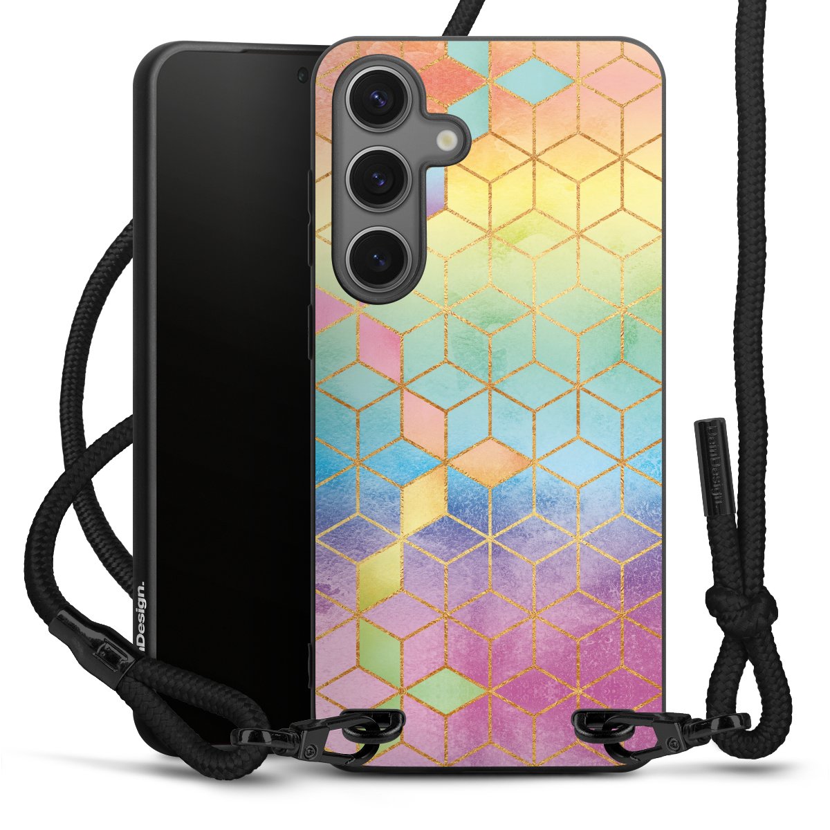Bei dieser Handyhülle nutzen wir das solide Direktdruck-Verfahren, weshalb der Druckbereich ausschließlich die Rückseite umfasst und der Rand hingegen unbedruckt bleibt. Das Case zum Umhängen kann sowohl unbedruckt, als auch vollflächig oder partiell bedruckt bestellt werden. Wähle für Dein Design entweder eines unserer exklusiven Shop-Motive, oder werde kreativ und gestalte Dein Wunschdesign zum Beispiel mit Fotos und Overlays selbst. Designe Dir Dein persönliches Trend-Accessoire und setze ein individuelles Statement auf den Straßen.
