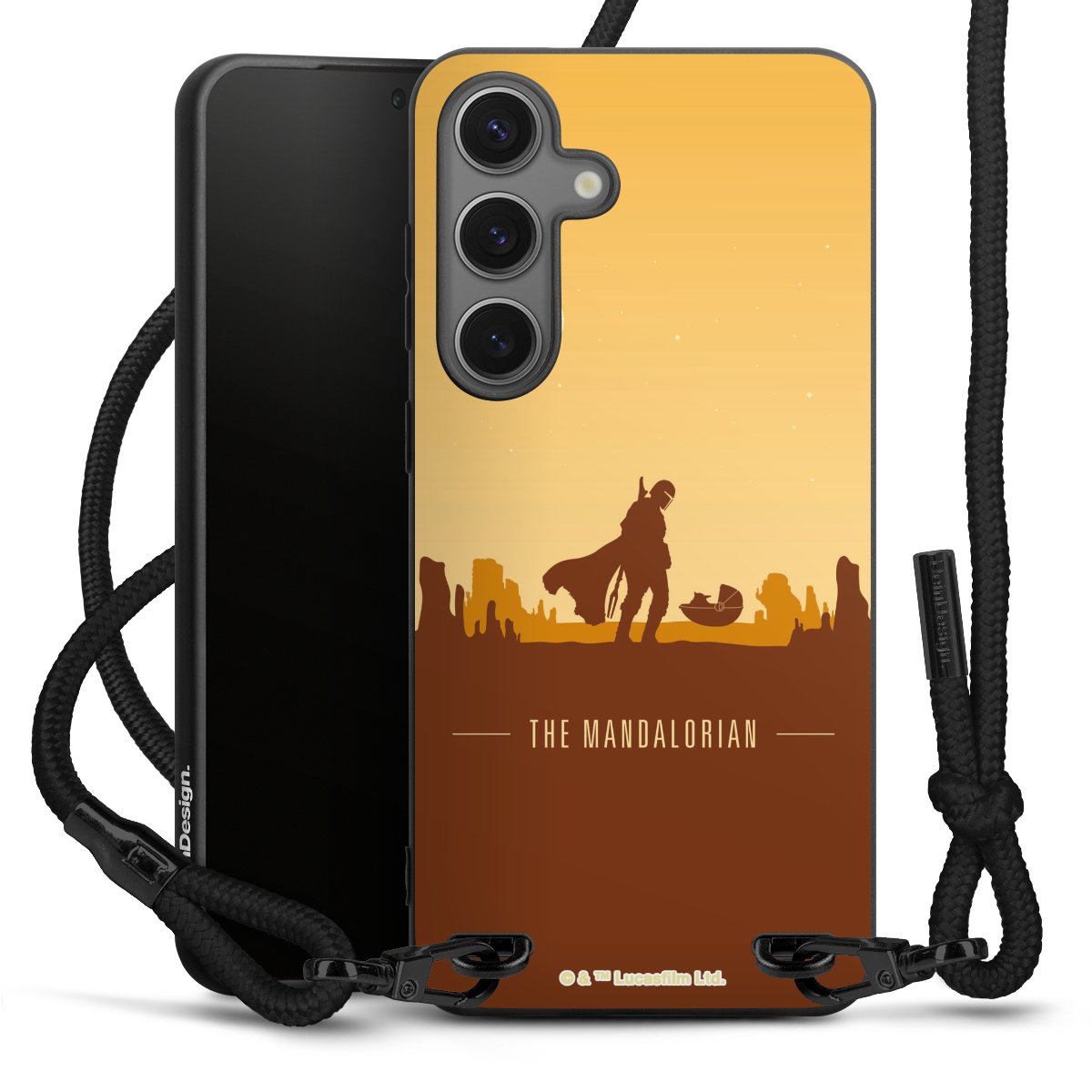 Pure Black: Handyhülle, Stoffband und Metalldetails in stylischem Mattschwarz.