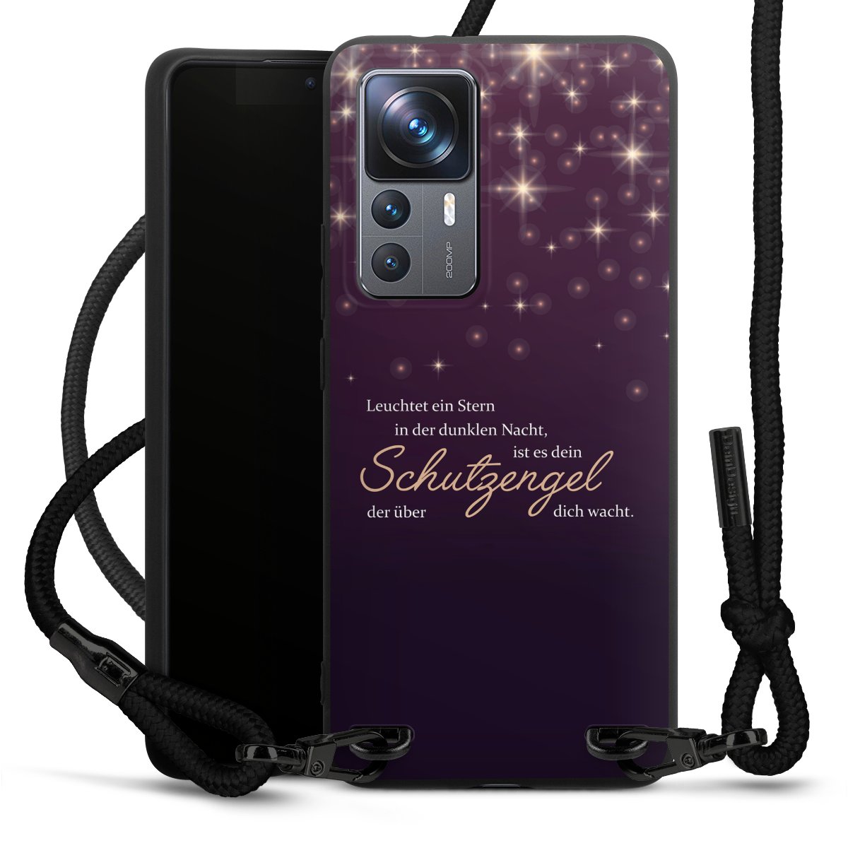 Pure Black: Handyhülle, Stoffband und Metalldetails in stylischem Mattschwarz.