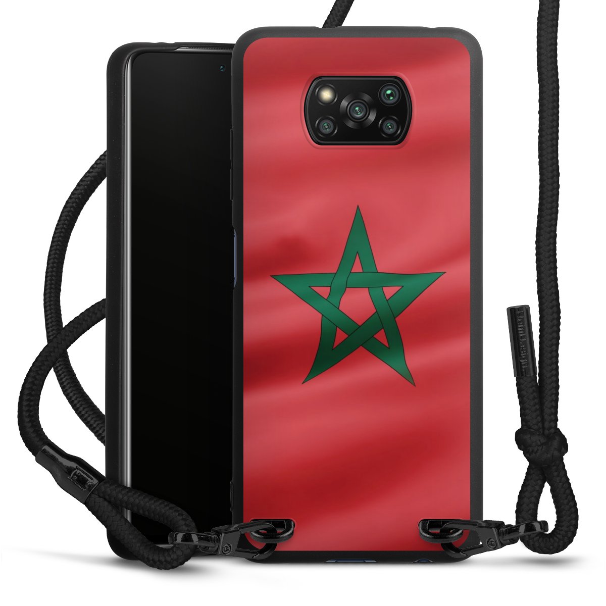 Die mattschwarze Silikonhülle besteht aus flexiblen TPU (thermoplastisches Polyurethan) und bietet robusten Schutz. Durch das langlebige, bruchsichere Material ist die Hülle biegsam und formbeständig zugleich. Die matte Oberfläche lässt Dein Design besser zur Geltung kommen und ist weniger anfällig für Fingerabdrücke und Schmutz. Das stylische Trend-Accessoire liegt griffig in der Hand und wird optimal von der Handykette aus Stoff (Polyester) ergänzt. Das geflochtene Stoffband ist ca. 1,70 Meter lang mit einem Durchmesser von ca. 0,5cm. Aufgrund der besonderen Knotentechnik ist das Band durch einfaches Ziehen in der Länge verstellbar. Als kleines i-Tüpfelchen haben wir das Band mit schicken Metall-Verschlüssen in Mattschwarz versehen.