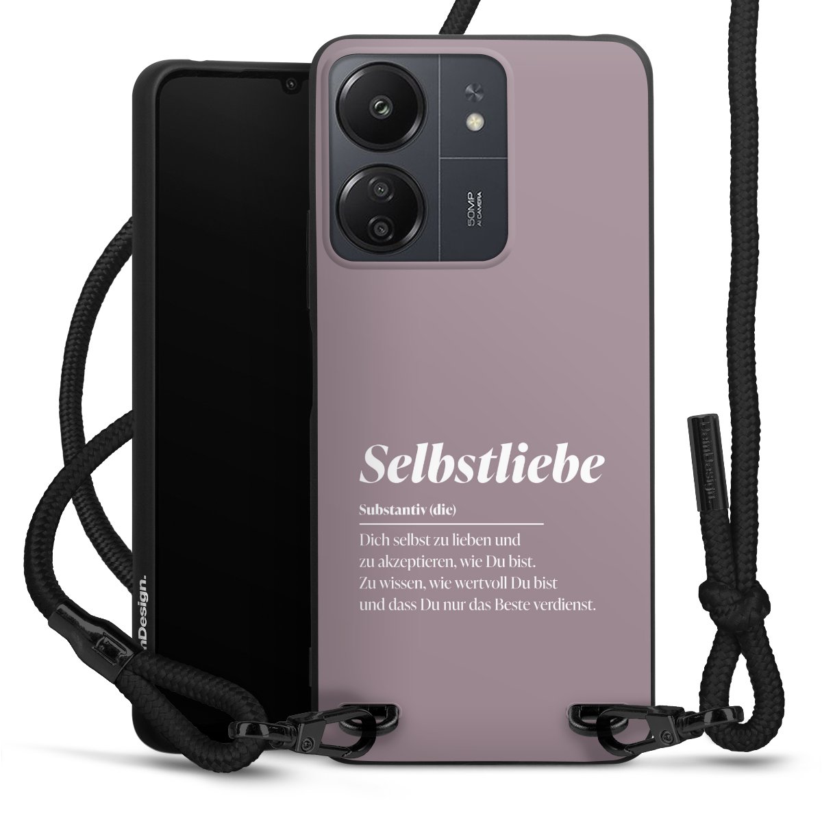 Bei dieser Handyhülle nutzen wir das solide Direktdruck-Verfahren, weshalb der Druckbereich ausschließlich die Rückseite umfasst und der Rand hingegen unbedruckt bleibt. Das Case zum Umhängen kann sowohl unbedruckt, als auch vollflächig oder partiell bedruckt bestellt werden. Wähle für Dein Design entweder eines unserer exklusiven Shop-Motive, oder werde kreativ und gestalte Dein Wunschdesign zum Beispiel mit Fotos und Overlays selbst. Designe Dir Dein persönliches Trend-Accessoire und setze ein individuelles Statement auf den Straßen.
