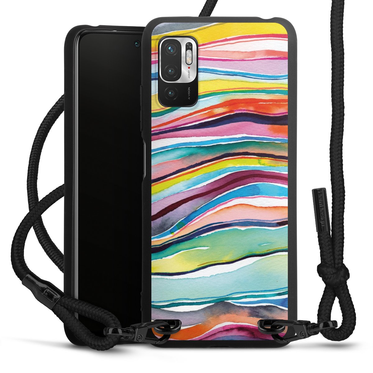 Bei dieser Handyhülle nutzen wir das solide Direktdruck-Verfahren, weshalb der Druckbereich ausschließlich die Rückseite umfasst und der Rand hingegen unbedruckt bleibt. Das Case zum Umhängen kann sowohl unbedruckt, als auch vollflächig oder partiell bedruckt bestellt werden. Wähle für Dein Design entweder eines unserer exklusiven Shop-Motive, oder werde kreativ und gestalte Dein Wunschdesign zum Beispiel mit Fotos und Overlays selbst. Designe Dir Dein persönliches Trend-Accessoire und setze ein individuelles Statement auf den Straßen.