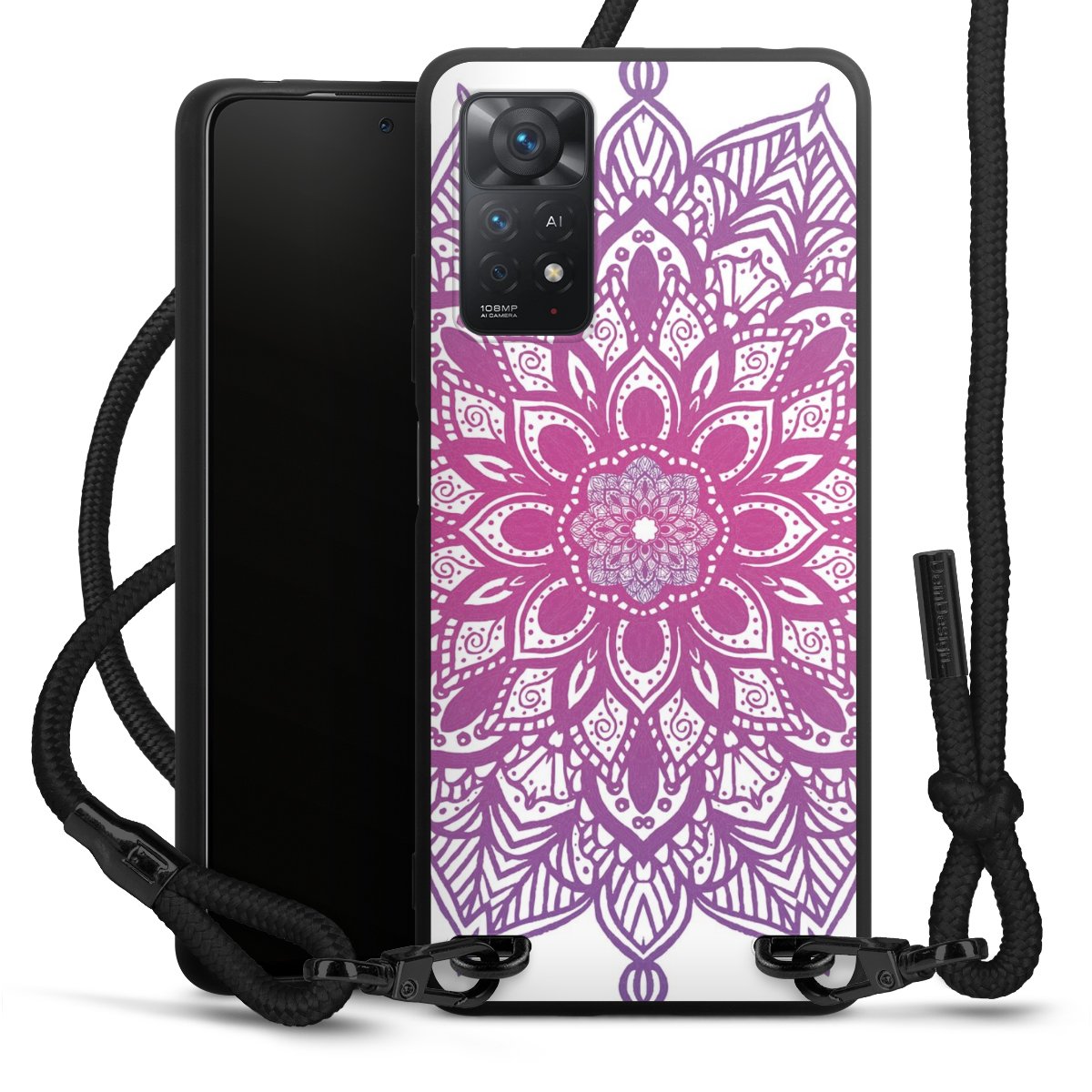 Die mattschwarze Silikonhülle besteht aus flexiblen TPU (thermoplastisches Polyurethan) und bietet robusten Schutz. Durch das langlebige, bruchsichere Material ist die Hülle biegsam und formbeständig zugleich. Die matte Oberfläche lässt Dein Design besser zur Geltung kommen und ist weniger anfällig für Fingerabdrücke und Schmutz. Das stylische Trend-Accessoire liegt griffig in der Hand und wird optimal von der Handykette aus Stoff (Polyester) ergänzt. Das geflochtene Stoffband ist ca. 1,70 Meter lang mit einem Durchmesser von ca. 0,5cm. Aufgrund der besonderen Knotentechnik ist das Band durch einfaches Ziehen in der Länge verstellbar. Als kleines i-Tüpfelchen haben wir das Band mit schicken Metall-Verschlüssen in Mattschwarz versehen.