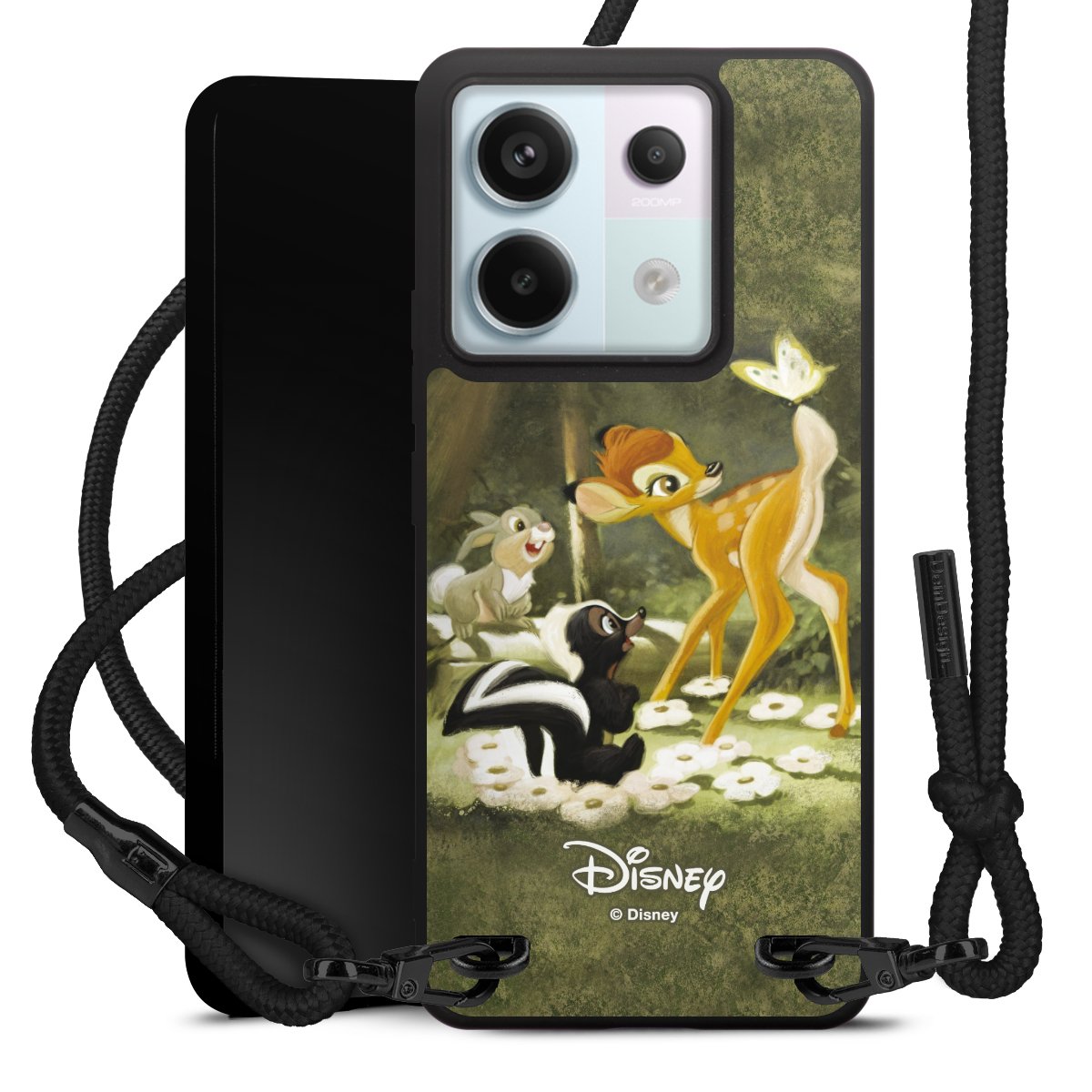 Pure Black: Handyhülle, Stoffband und Metalldetails in stylischem Mattschwarz.