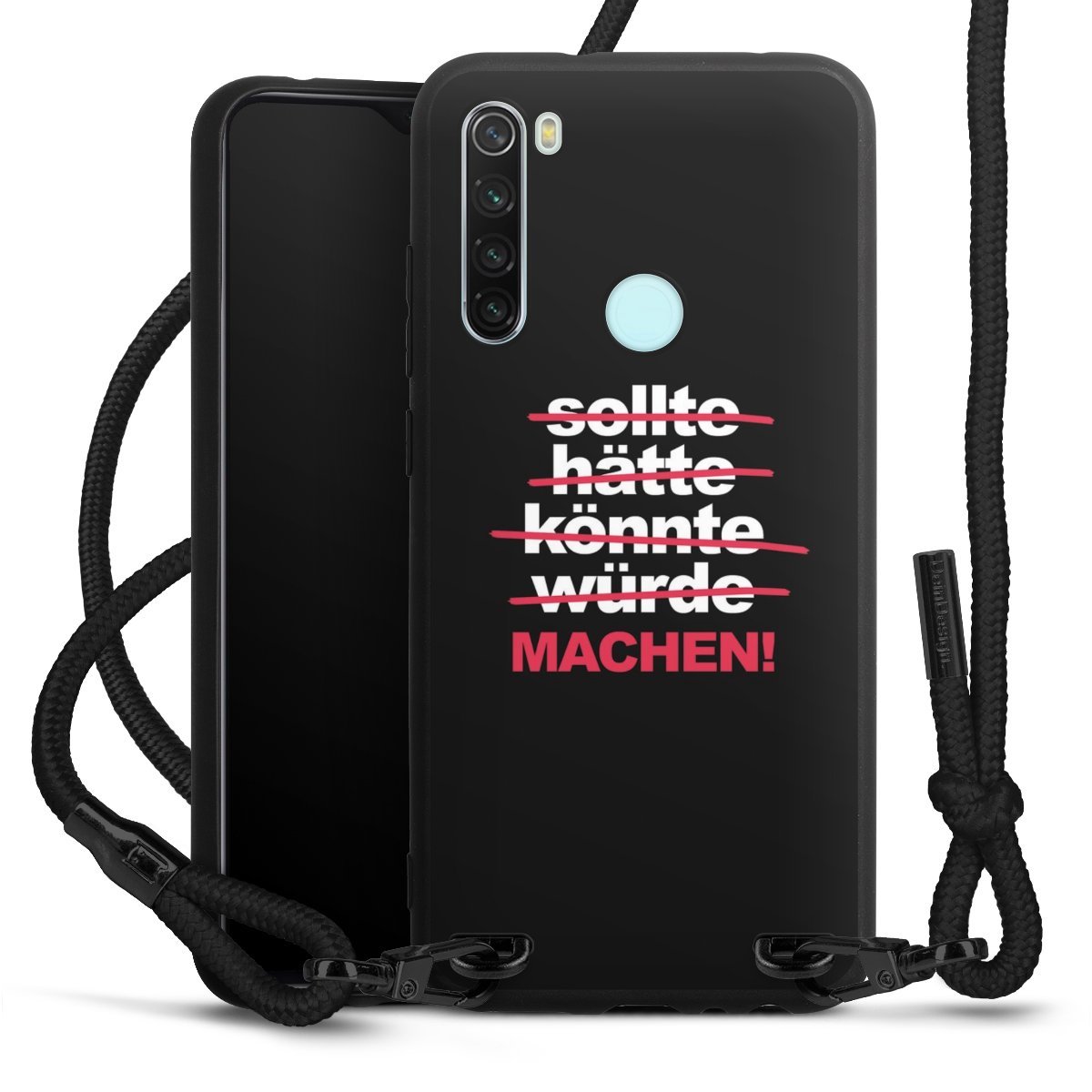 Die mattschwarze Silikonhülle besteht aus flexiblen TPU (thermoplastisches Polyurethan) und bietet robusten Schutz. Durch das langlebige, bruchsichere Material ist die Hülle biegsam und formbeständig zugleich. Die matte Oberfläche lässt Dein Design besser zur Geltung kommen und ist weniger anfällig für Fingerabdrücke und Schmutz. Das stylische Trend-Accessoire liegt griffig in der Hand und wird optimal von der Handykette aus Stoff (Polyester) ergänzt. Das geflochtene Stoffband ist ca. 1,70 Meter lang mit einem Durchmesser von ca. 0,5cm. Aufgrund der besonderen Knotentechnik ist das Band durch einfaches Ziehen in der Länge verstellbar. Als kleines i-Tüpfelchen haben wir das Band mit schicken Metall-Verschlüssen in Mattschwarz versehen.