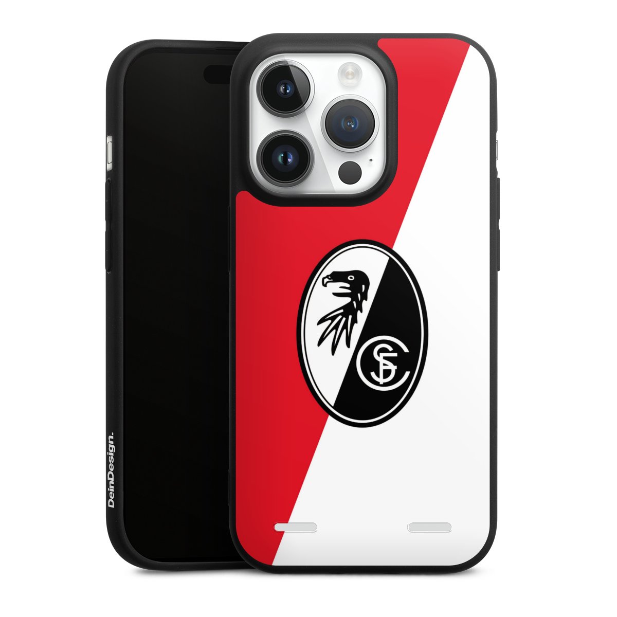 Bei DeinDesign kannst Du Dir eine individuelle SC-Freiburg-Handyhülle aussuchen, auf der das stilvolle schwarz-weiße Logo mit dem Greifenkopf zu sehen ist. Durch eine solche Hülle erhält Dein Smartphone ein unverkennbar individuelles Design. Der SC-Freiburg-Shop bietet lizensierte Fanartikel für alle Fans der Breisgau-Brasilianer.