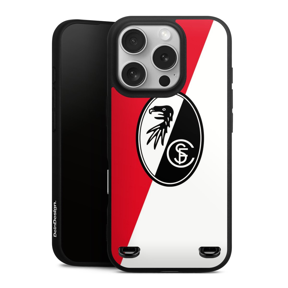 Bei DeinDesign kannst Du Dir eine individuelle SC-Freiburg-Handyhülle aussuchen, auf der das stilvolle schwarz-weiße Logo mit dem Greifenkopf zu sehen ist. Durch eine solche Hülle erhält Dein Smartphone ein unverkennbar individuelles Design. Der SC-Freiburg-Shop bietet lizensierte Fanartikel für alle Fans der Breisgau-Brasilianer.
