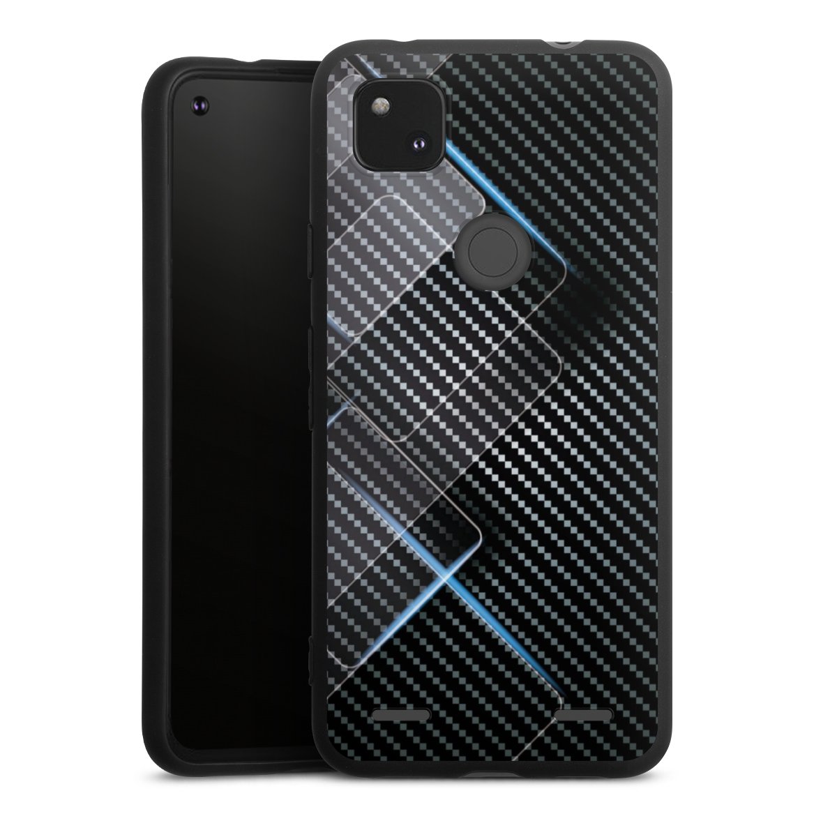 Blaue Linien auf Karbon