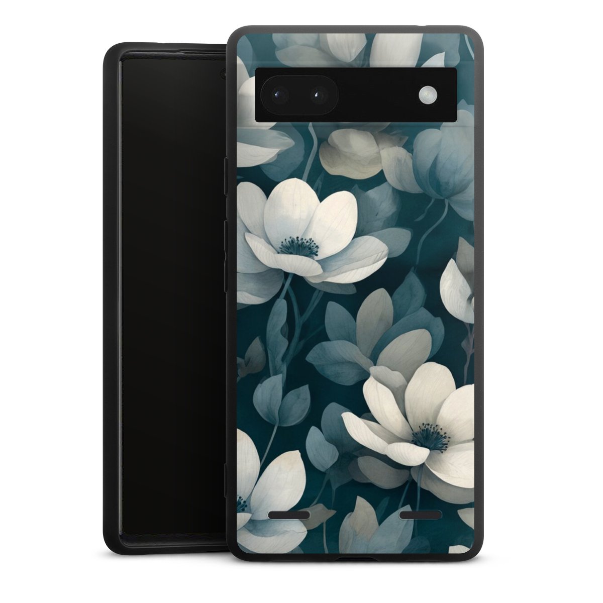 Petrolfarbene Negativblumen mit KI