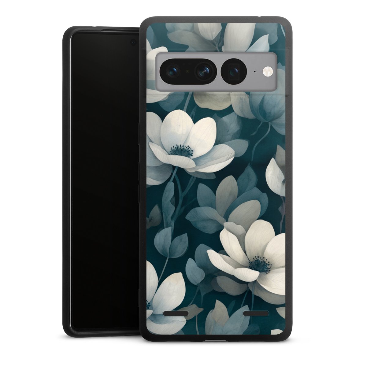 Petrolfarbene Negativblumen mit KI