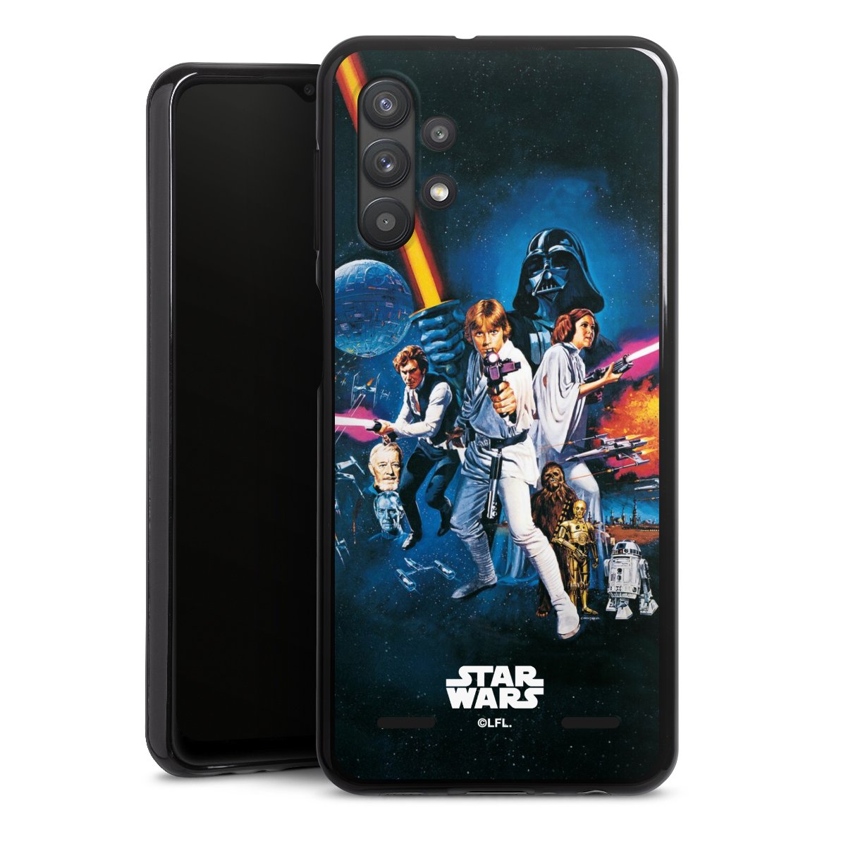 Darth Vader, C3PO, R2D2 und Meister Yoda findest Du in unserem Star Wars Shop auf DeinDesign. Natürlich gibt es auch Star Wars Handyhüllen mit den legendären Charakteren Luke Skywalker, Prinzessin Leia und Han Solo, den Helden der ersten Saga. Wer jedoch die Hauptfiguren der neuen Star Wars Filme ins Herz geschlossen hat, kann auch Finn und Rey mit ihren mächtigen Waffen auf der Rückseite seines Smartphones haben. Die vielseitigen Schutzhüllen in verschiedenen Ausführungen sind das perfekte Geschenk für alle Star Wars Fans, die ihrem Smartphone eine individuelle Note verleihen wollen.