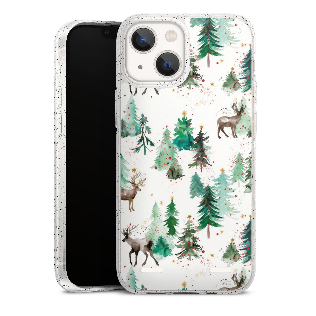 Hirsche und Winterweihnachtsbäume