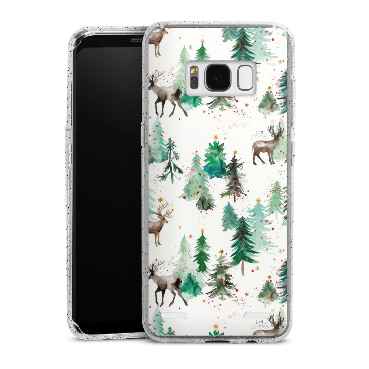Hirsche und Winterweihnachtsbäume