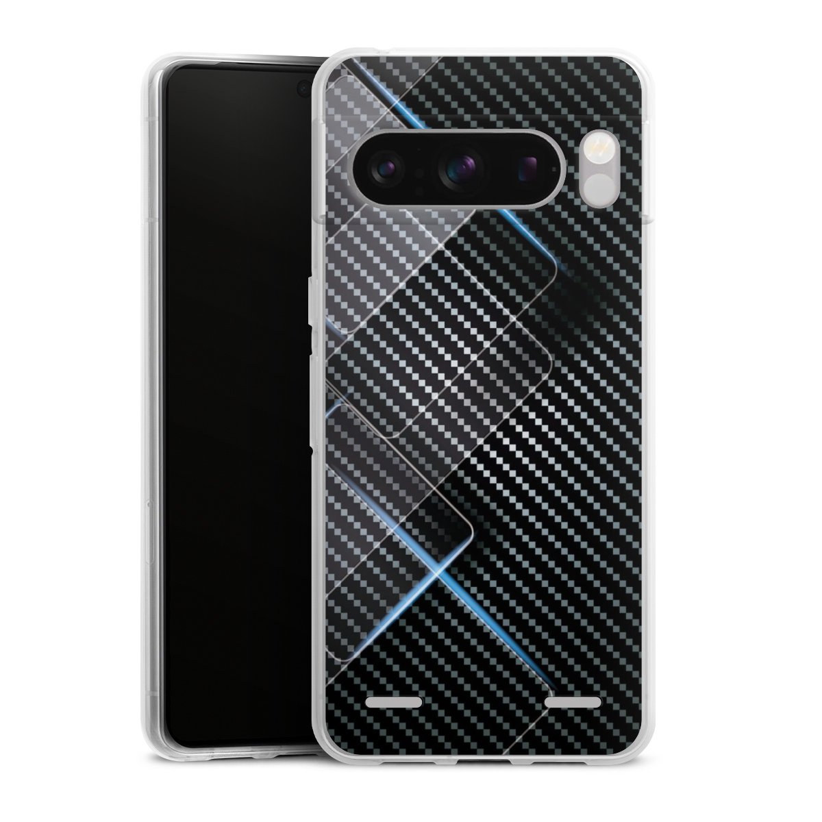 Blaue Linien auf Karbon