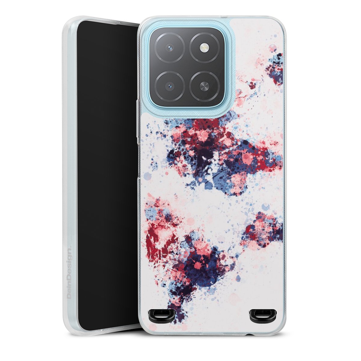 Weltkarte Farbenspritzer Blau Rot