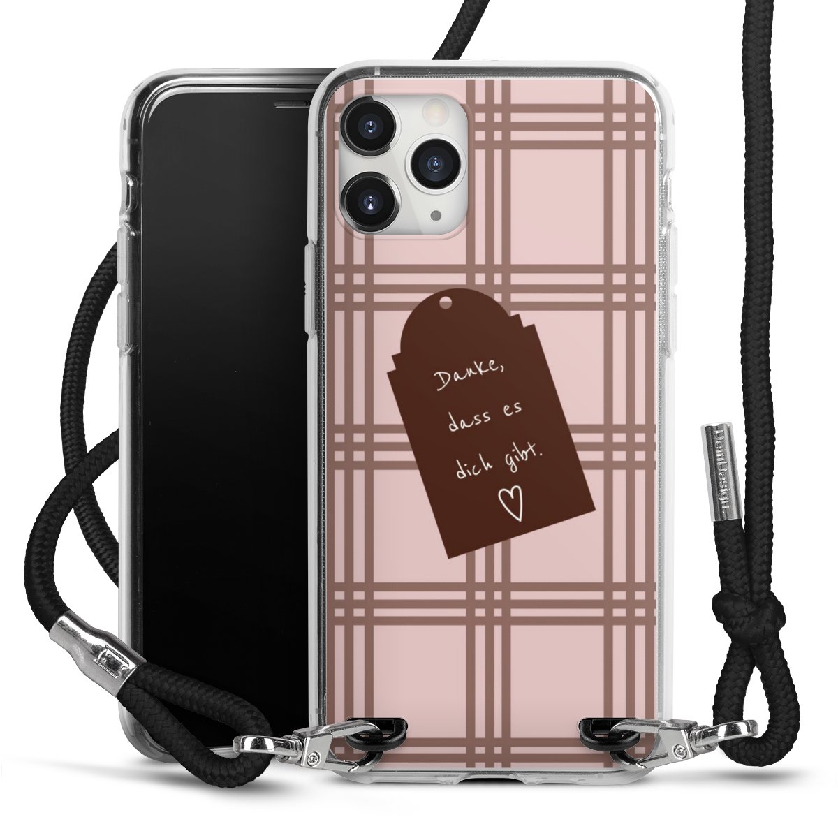 Habe Dein Handy, dank der flexiblen Silikon Handyhülle zum Umhängen mit der Handykette aus Stoff, immer griffbereit.