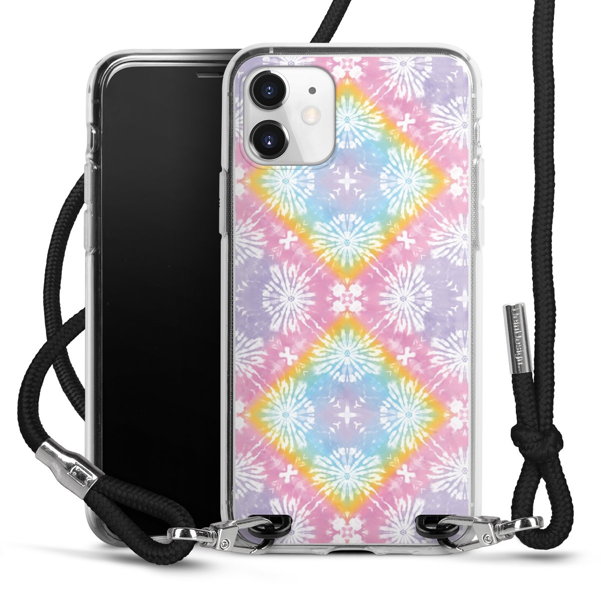 Habe Dein Handy, dank der flexiblen Silikon Handyhülle zum Umhängen mit der Handykette aus Stoff, immer griffbereit.