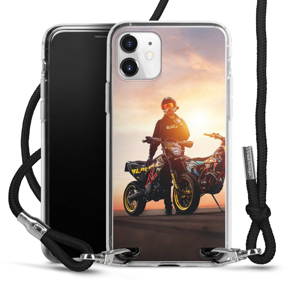 Bei dieser Handyhülle nutzen wir das solide Direktdruck-Verfahren, weshalb der Druckbereich ausschließlich die Rückseite umfasst und der Rand hingegen unbedruckt bleibt. Das Case zum Umhängen kann sowohl unbedruckt, als auch vollflächig oder partiell bedruckt bestellt werden. Wähle für Dein Design entweder eines unserer exklusiven Shop-Motive, oder werde kreativ und gestalte Dein Wunschdesign zum Beispiel mit Fotos und Overlays selbst. Designe Dir Dein persönliches Trend-Accessoire und setze ein individuelles Statement auf den Straßen!