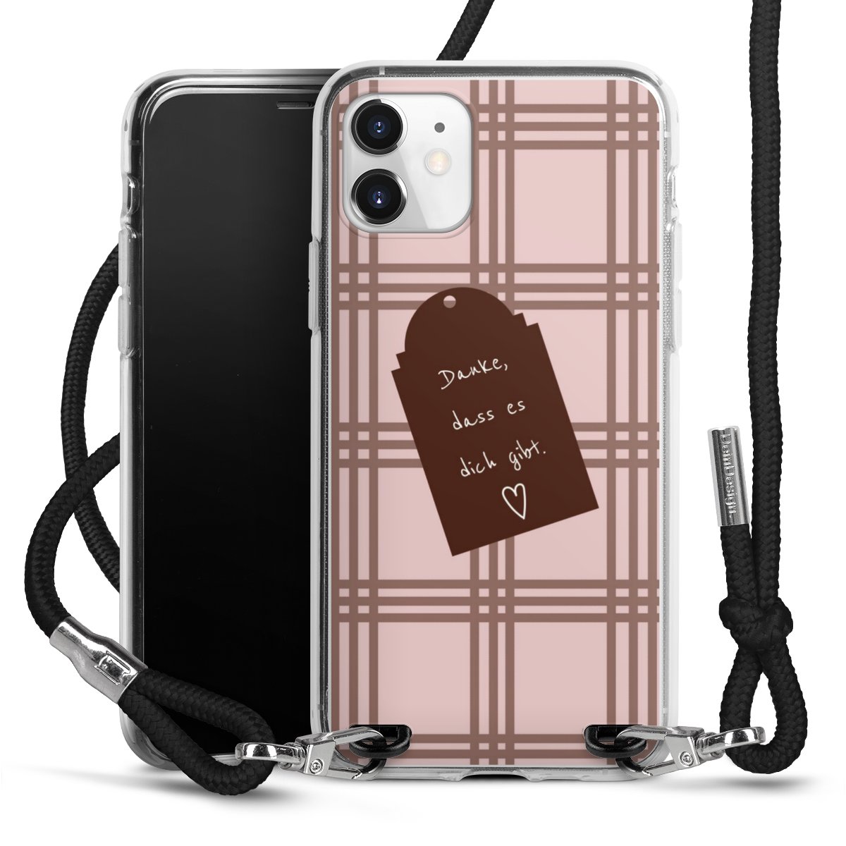 Habe Dein Handy, dank der flexiblen Silikon Handyhülle zum Umhängen mit der Handykette aus Stoff, immer griffbereit.