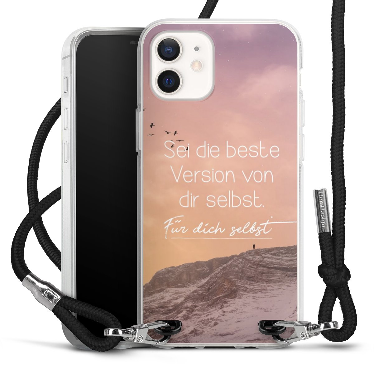 Bei dieser Handyhülle nutzen wir das solide Direktdruck-Verfahren, weshalb der Druckbereich ausschließlich die Rückseite umfasst und der Rand hingegen unbedruckt bleibt. Das Case zum Umhängen kann sowohl unbedruckt, als auch vollflächig oder partiell bedruckt bestellt werden. Wähle für Dein Design entweder eines unserer exklusiven Shop-Motive, oder werde kreativ und gestalte Dein Wunschdesign zum Beispiel mit Fotos und Overlays selbst. Designe Dir Dein persönliches Trend-Accessoire und setze ein individuelles Statement auf den Straßen!