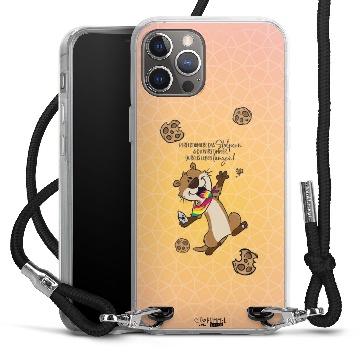 Habe Dein Handy, dank der flexiblen Silikon Handyhülle zum Umhängen mit der Handykette aus Stoff, immer griffbereit.
