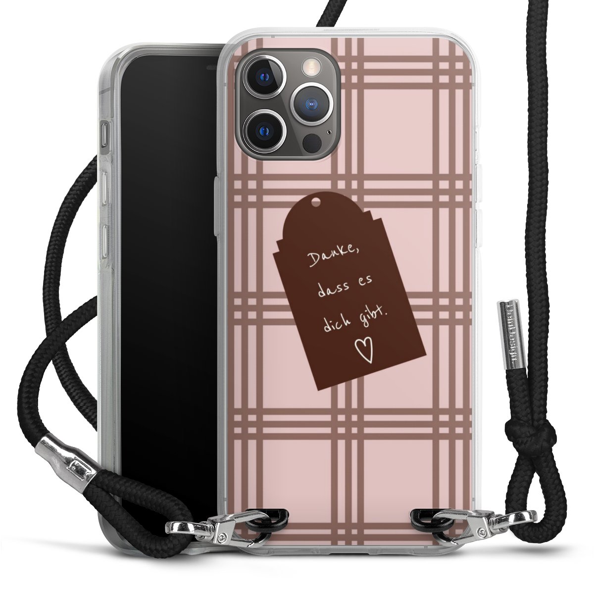 Habe Dein Handy, dank der flexiblen Silikon Handyhülle zum Umhängen mit der Handykette aus Stoff, immer griffbereit.
