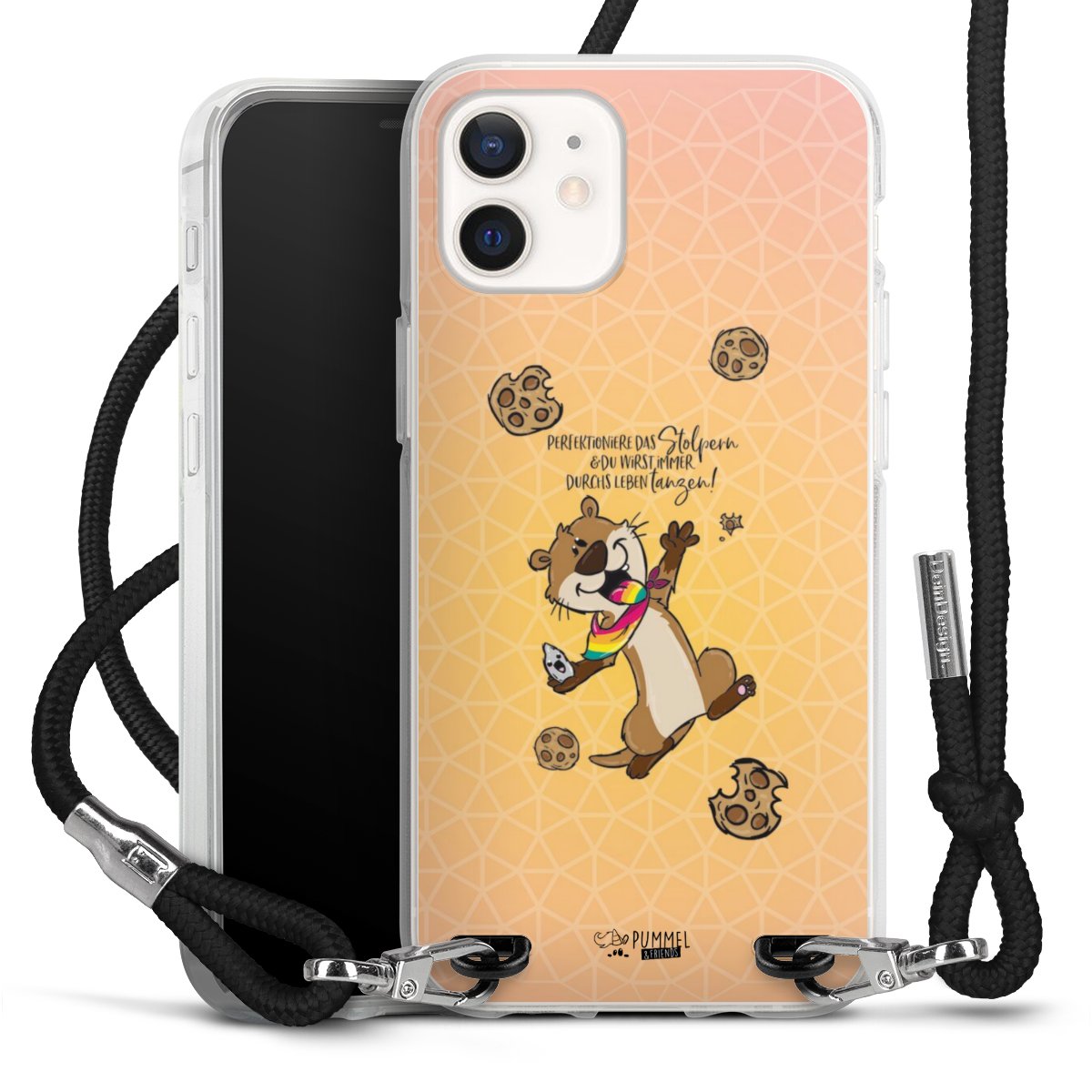 Habe Dein Handy, dank der flexiblen Silikon Handyhülle zum Umhängen mit der Handykette aus Stoff, immer griffbereit.
