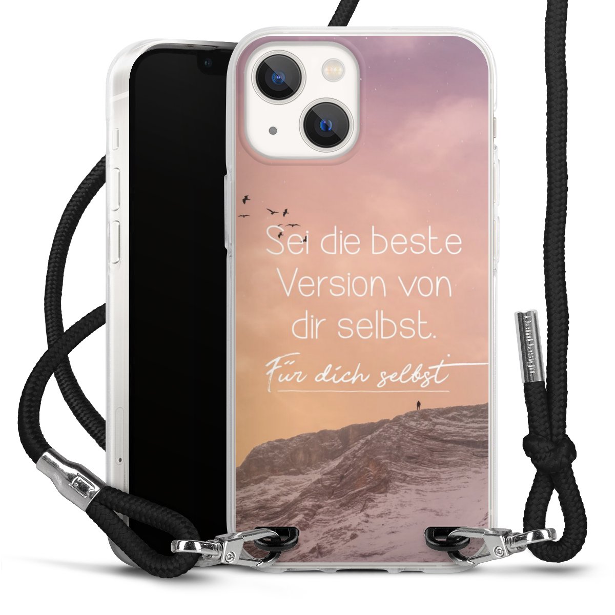 Bei dieser Handyhülle nutzen wir das solide Direktdruck-Verfahren, weshalb der Druckbereich ausschließlich die Rückseite umfasst und der Rand hingegen unbedruckt bleibt. Das Case zum Umhängen kann sowohl unbedruckt, als auch vollflächig oder partiell bedruckt bestellt werden. Wähle für Dein Design entweder eines unserer exklusiven Shop-Motive, oder werde kreativ und gestalte Dein Wunschdesign zum Beispiel mit Fotos und Overlays selbst. Designe Dir Dein persönliches Trend-Accessoire und setze ein individuelles Statement auf den Straßen!