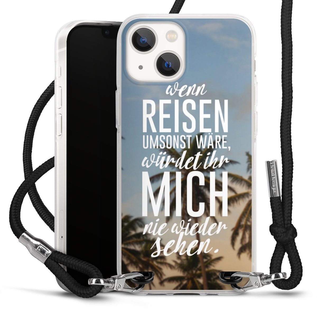 Bei dieser Handyhülle nutzen wir das solide Direktdruck-Verfahren, weshalb der Druckbereich ausschließlich die Rückseite umfasst und der Rand hingegen unbedruckt bleibt. Das Case zum Umhängen kann sowohl unbedruckt, als auch vollflächig oder partiell bedruckt bestellt werden. Wähle für Dein Design entweder eines unserer exklusiven Shop-Motive, oder werde kreativ und gestalte Dein Wunschdesign zum Beispiel mit Fotos und Overlays selbst. Designe Dir Dein persönliches Trend-Accessoire und setze ein individuelles Statement auf den Straßen!