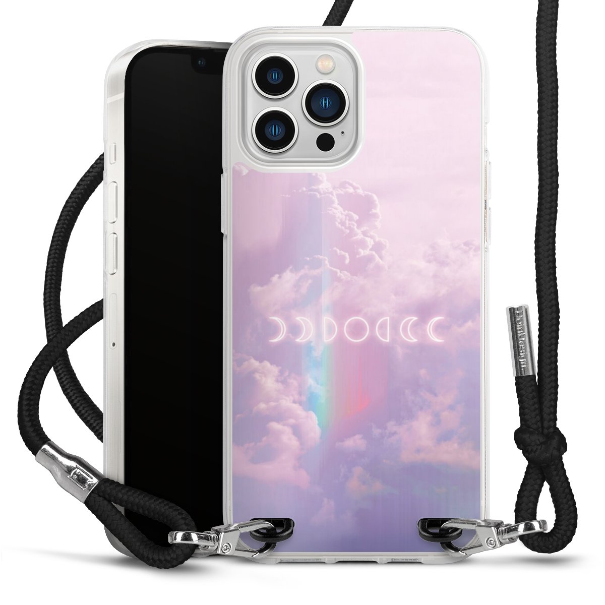Bei dieser Handyhülle nutzen wir das solide Direktdruck-Verfahren, weshalb der Druckbereich ausschließlich die Rückseite umfasst und der Rand hingegen unbedruckt bleibt. Das Case zum Umhängen kann sowohl unbedruckt, als auch vollflächig oder partiell bedruckt bestellt werden. Wähle für Dein Design entweder eines unserer exklusiven Shop-Motive, oder werde kreativ und gestalte Dein Wunschdesign zum Beispiel mit Fotos und Overlays selbst. Designe Dir Dein persönliches Trend-Accessoire und setze ein individuelles Statement auf den Straßen!