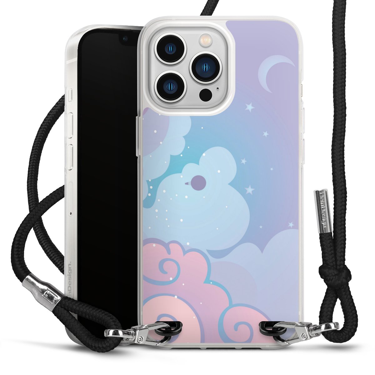 Bei dieser Handyhülle nutzen wir das solide Direktdruck-Verfahren, weshalb der Druckbereich ausschließlich die Rückseite umfasst und der Rand hingegen unbedruckt bleibt. Das Case zum Umhängen kann sowohl unbedruckt, als auch vollflächig oder partiell bedruckt bestellt werden. Wähle für Dein Design entweder eines unserer exklusiven Shop-Motive, oder werde kreativ und gestalte Dein Wunschdesign zum Beispiel mit Fotos und Overlays selbst. Designe Dir Dein persönliches Trend-Accessoire und setze ein individuelles Statement auf den Straßen!
