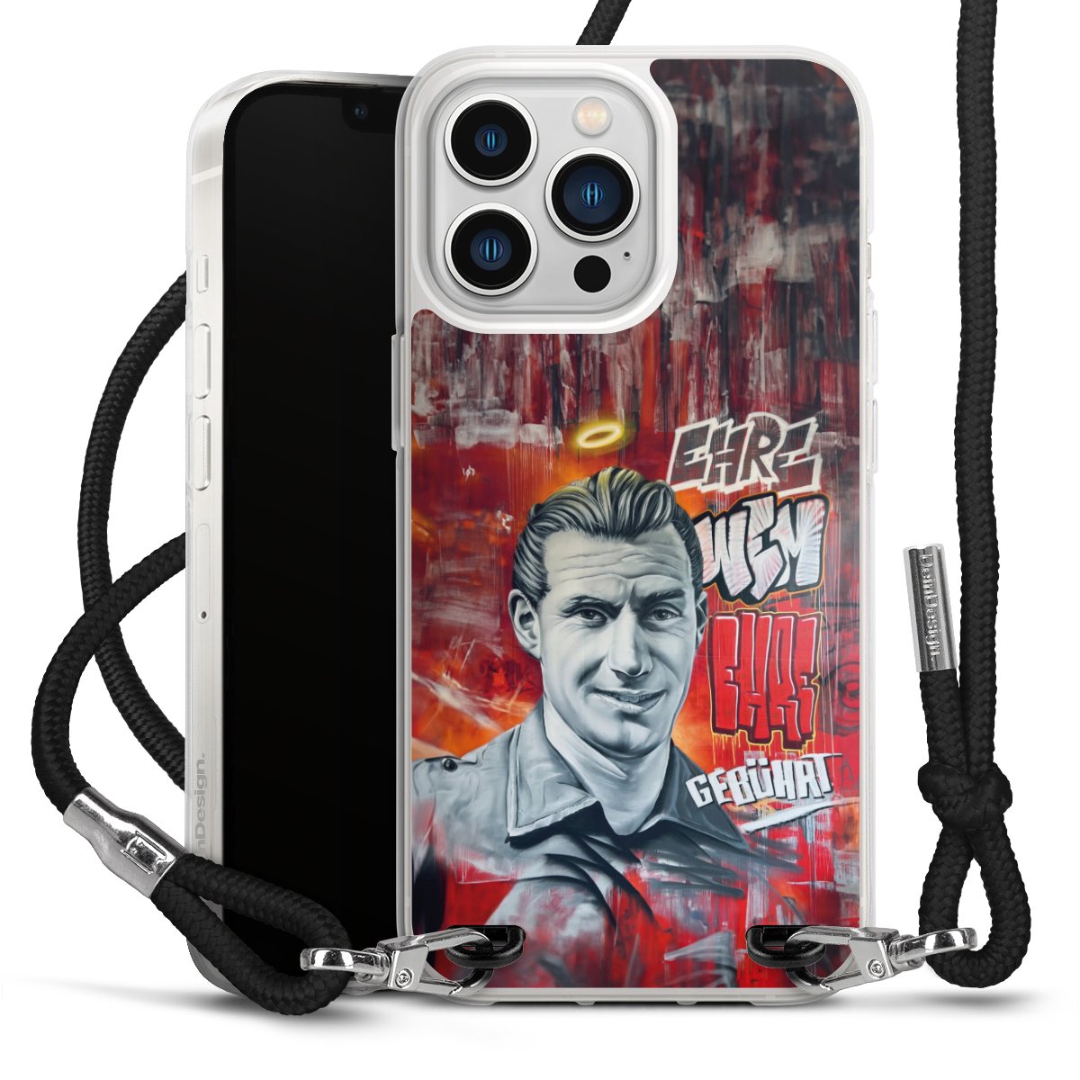 Bei dieser Handyhülle nutzen wir das solide Direktdruck-Verfahren, weshalb der Druckbereich ausschließlich die Rückseite umfasst und der Rand hingegen unbedruckt bleibt. Das Case zum Umhängen kann sowohl unbedruckt, als auch vollflächig oder partiell bedruckt bestellt werden. Wähle für Dein Design entweder eines unserer exklusiven Shop-Motive, oder werde kreativ und gestalte Dein Wunschdesign zum Beispiel mit Fotos und Overlays selbst. Designe Dir Dein persönliches Trend-Accessoire und setze ein individuelles Statement auf den Straßen!